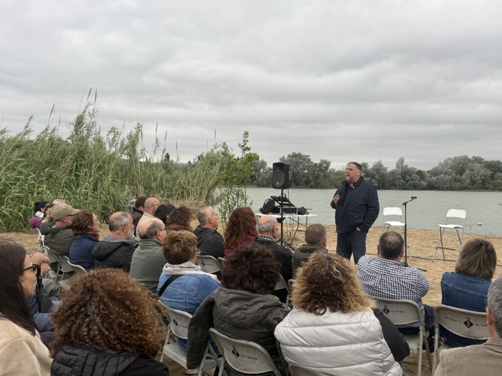 A la vora d’este element restaurat i amb l’anar i venir dels veïns i veïnes que s’apropaven per visitar-lo, es va celebrar la conferència a càrrec de l’historiador i líder d’ERC, Oriol Junqueras. La seua intervenció va posar en context als oients de les condicions del país entre els anys 30 i 40, una dècada marcada per les guerres i els canvis socials i econòmics que experimentava Catalunya. En ella, Junqueras va teixir un context històric concret, explicant les singularitats catalanes en contraposició a l’Estat i posant èmfasi en la faena de milers de pagesos i treballadors que sostenien l’economia a base d’esforç i condicions, molt cop, duríssimes. Va reivindicar també la gran importància de la Batalla de l’Ebre, la batalla més important del segle XX a nivell europeu a banda de les dues guerres mundials.