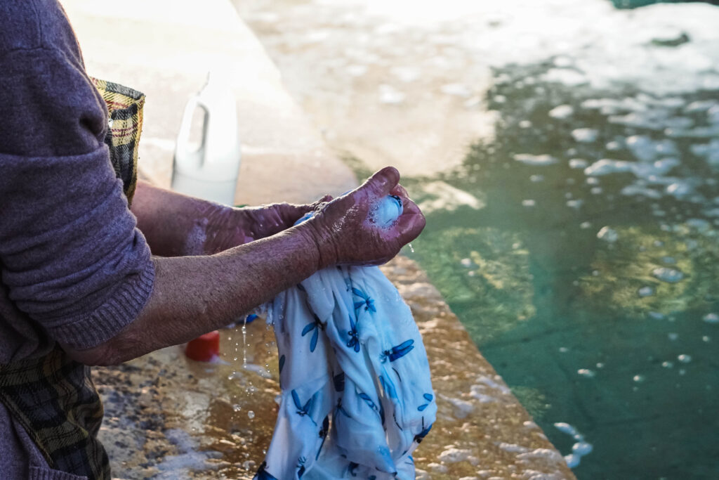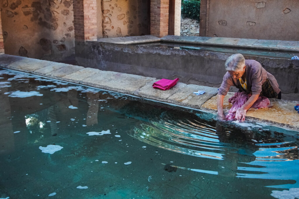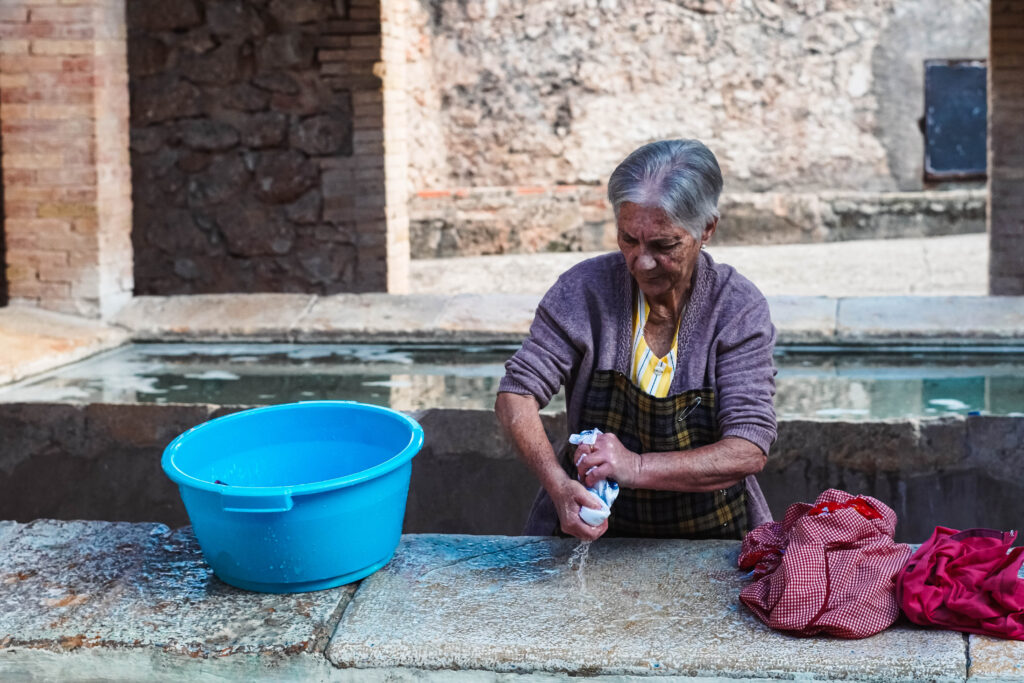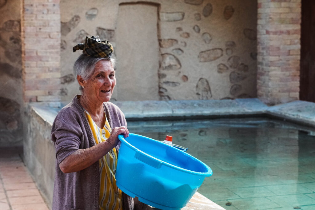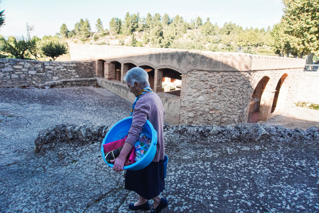 Als safarejos escull la pedra que li agrada més, la que és més llarga perquè li permet fregar les peces de roba sense les juntes com a obstacle. Es col·loca al mateix lloc tot i que podria moure’s per tot l’espai sense problemes. Sempre és l’única persona que renta, sempre està sola. És l’última dona que fa servir els rentadors de tota la comarca de la Ribera d’Ebre, tot i que, en la majoria de poblacions ebrenques, és un hàbit que s’ha perdut totalment. Pepita té una rentadora a casa, com tothom, però tornar aquí la transporta a un temps passat on totes les dones tivissenques s’arremolinaven entre les dues construccions plenes d’aigua, fetes com dues piscines. Ella no s’hi ha banyat mai, però els joves del poble, de vegades, els seguixen fent servir per refrescar-se.