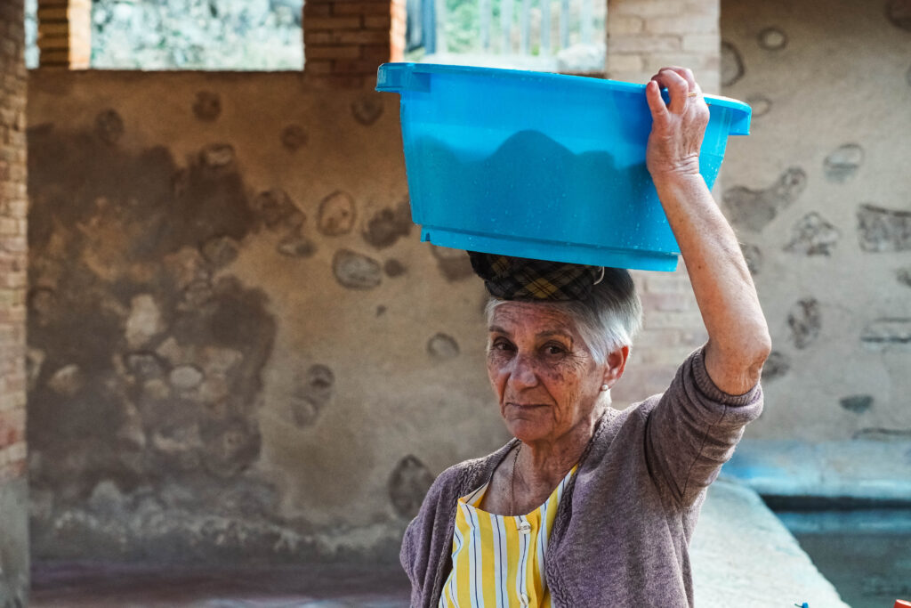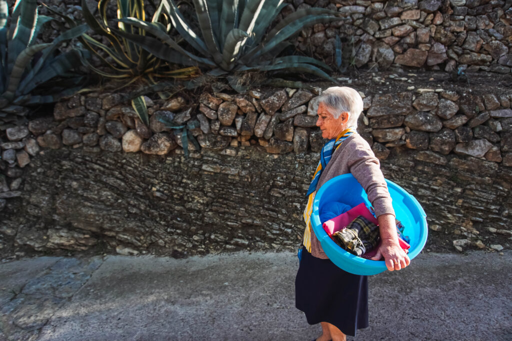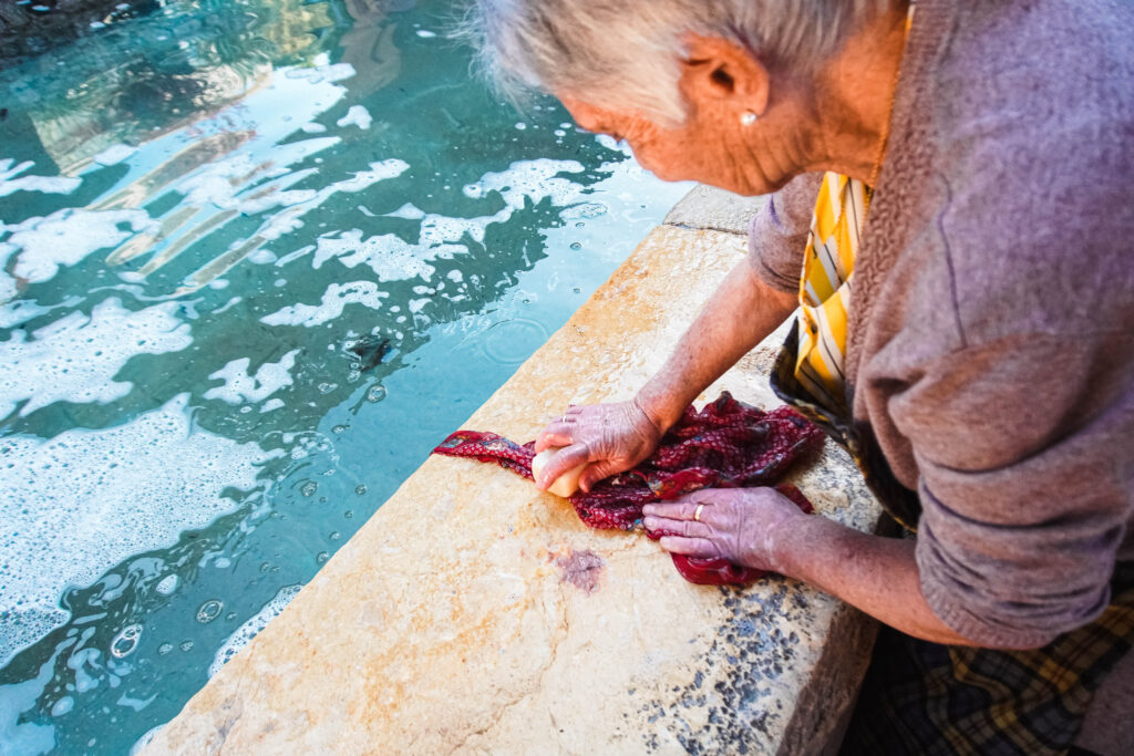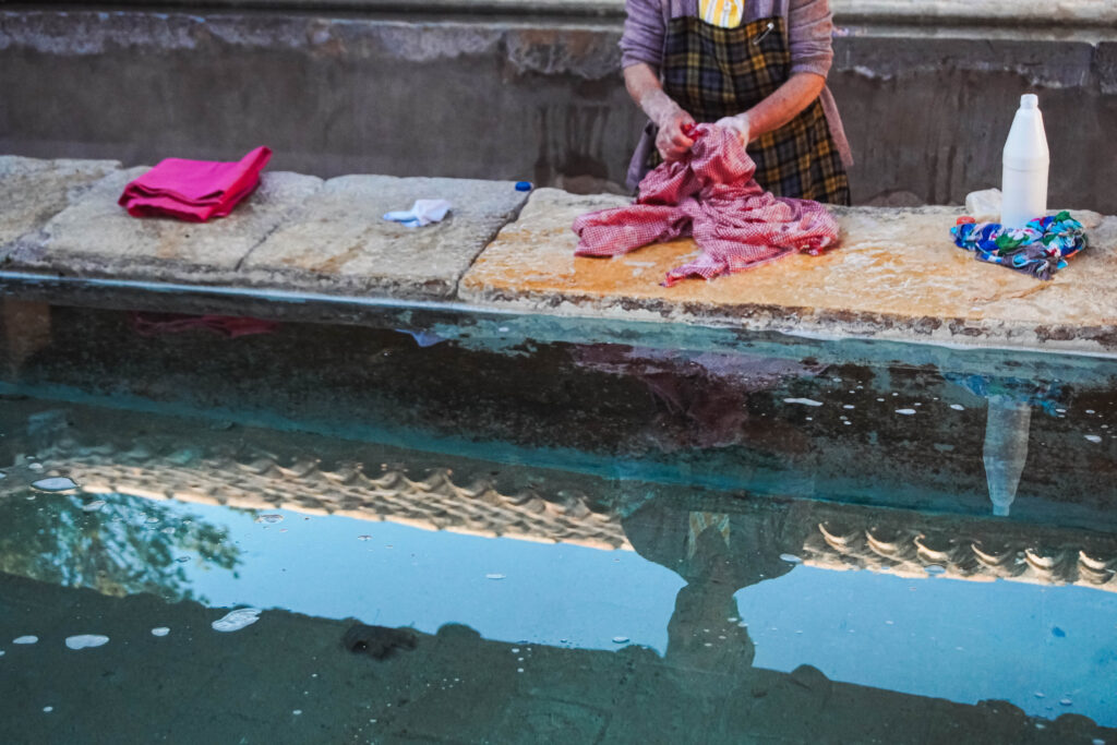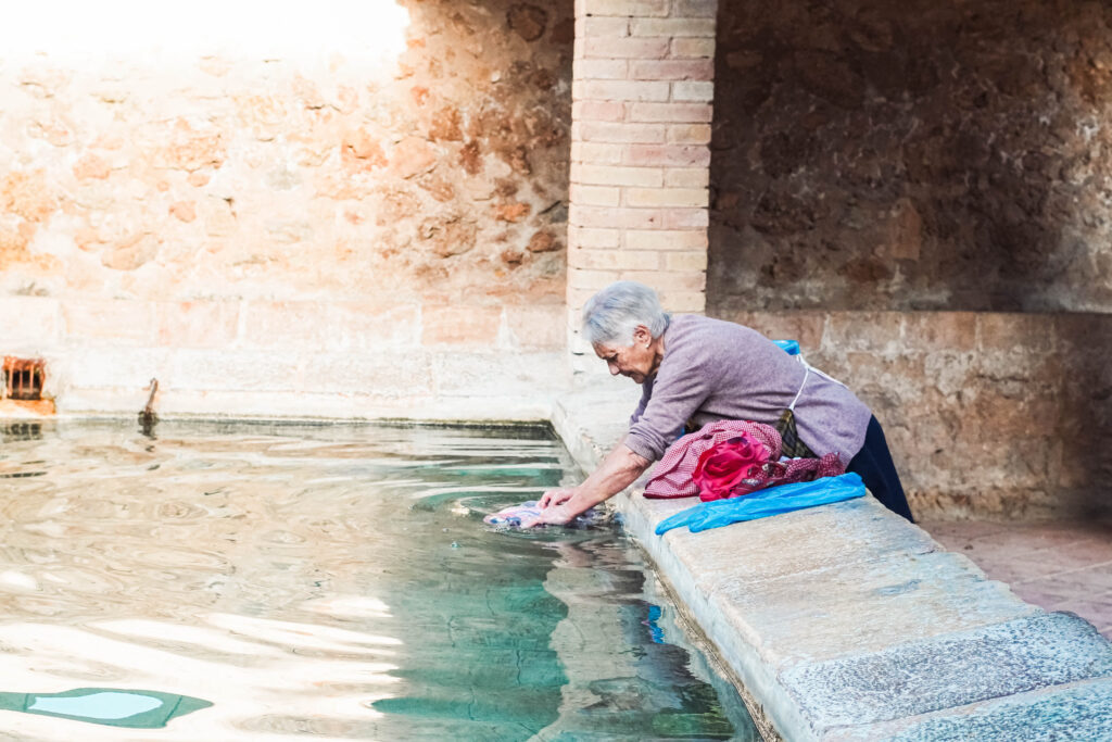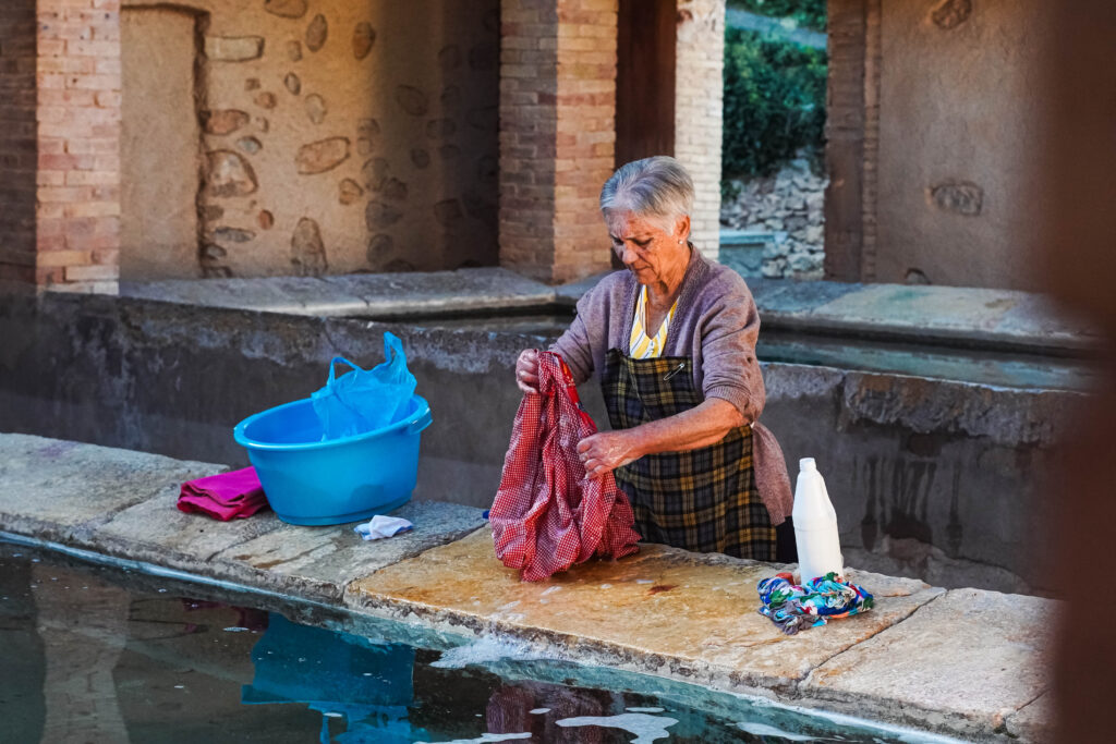 Als safarejos escull la pedra que li agrada més, la que és més llarga perquè li permet fregar les peces de roba sense les juntes com a obstacle. Es col·loca al mateix lloc tot i que podria moure’s per tot l’espai sense problemes. Sempre és l’única persona que renta, sempre està sola. És l’última dona que fa servir els rentadors de tota la comarca de la Ribera d’Ebre, tot i que, en la majoria de poblacions ebrenques, és un hàbit que s’ha perdut totalment. Pepita té una rentadora a casa, com tothom, però tornar aquí la transporta a un temps passat on totes les dones tivissenques s’arremolinaven entre les dues construccions plenes d’aigua, fetes com dues piscines. Ella no s’hi ha banyat mai, però els joves del poble, de vegades, els seguixen fent servir per refrescar-se.