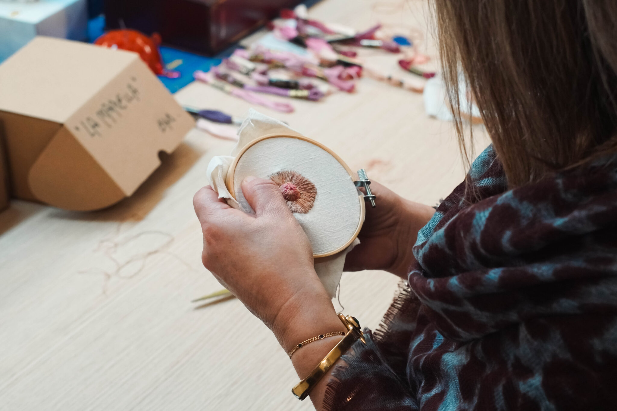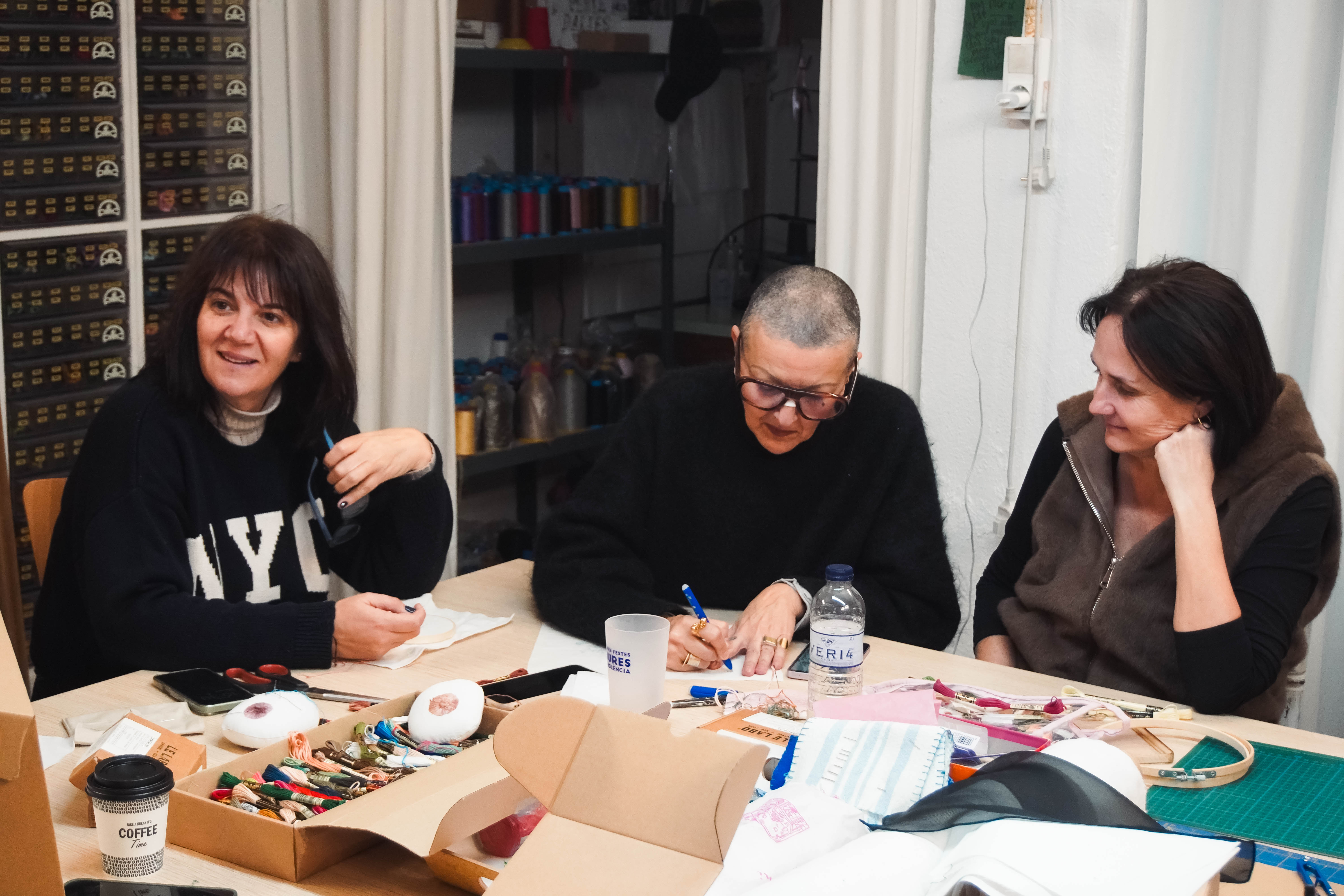 Dissabte al matí. A la Ràpita és dia d’aixecar-se, amanir-se, anar a buscar una farinosa a la Bolleria Sant Antoni i anar a petar a l’OVERlook, l’estudi-taller de la modista i dissenyadora Anna Vizcarro. Este espai pot definir-se de moltes altres maneres, però és, essencialment, un lloc on hi passen coses tota l’estona. Coses relacionades amb la moda, l’art, el saber estar, el present, el treball amb les mans, la desconnexió del dia a dia… i l’aprenentatge d’aquells treballs ancestrals que dixem de banda en un món que bull. El dissabte al matí és dia de brodar en comunitat, al voltant d’una taula on només hi ha dones que formen part d’un projecte que posa el seu cos al centre de manera desacomplexada: La Mamella.