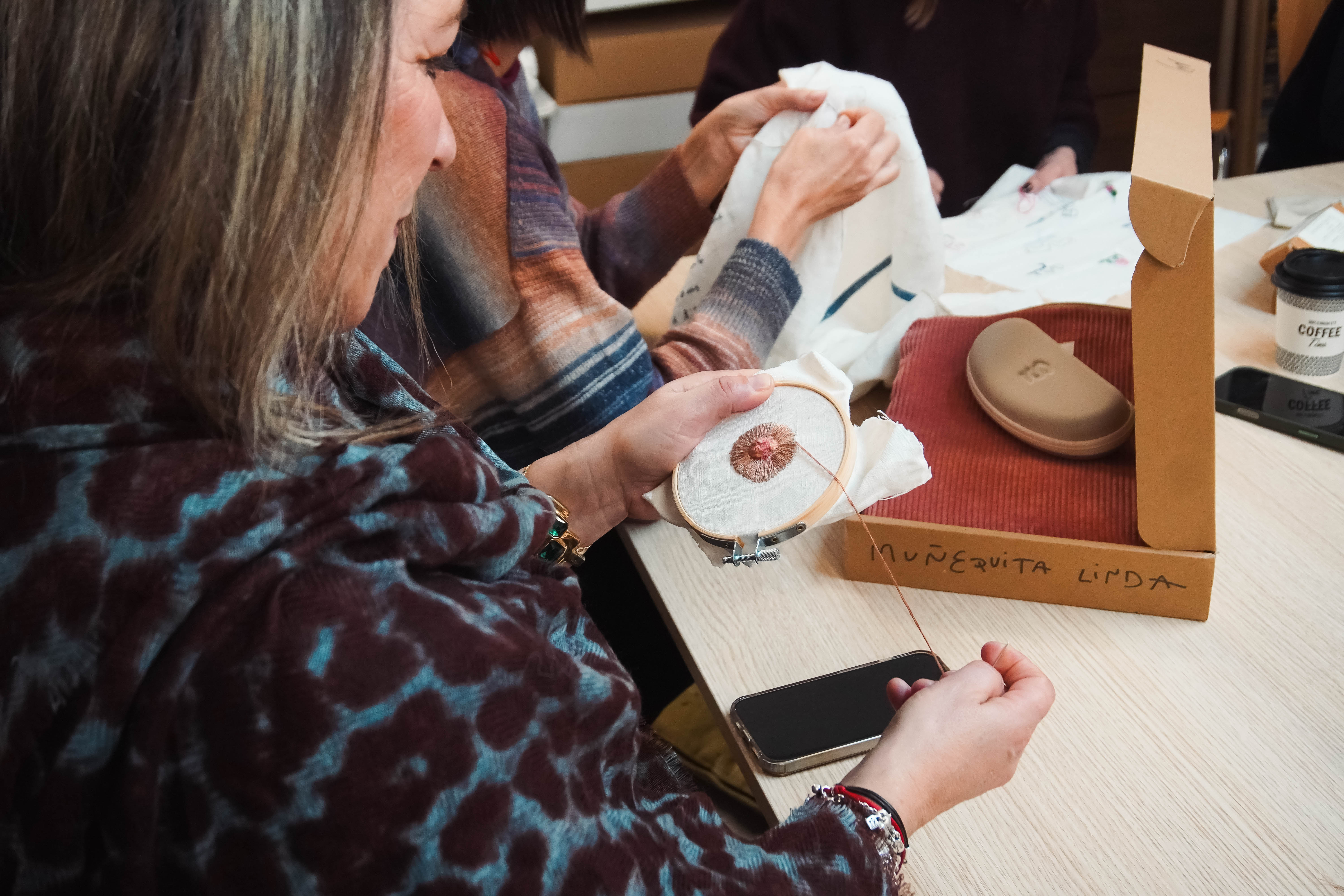 La Mamella naix el passat gener com un taller d’un grapat de matins de durada, on les assistents s’han de fer una foto del seu pit i replicar-lo mitjançant la tècnica del brodatge. “Jo tenia una samarreta amb dos pits brodats al lloc dels pits reals i em va venir de gust que tothom la pugués portar. Però després vaig pensar que seria millor si cada dona portés una mamella com a charm, a la bossa o on fos, sempre a vistes”, conta Vizcarro. Per a ella era vital que este fos un curs només per a dones cisgènere i dones transgènere, on puguen reivindicar la naturalitat d’una part dels seus cossos que sovint és sexualitzada i jutjada. La majoria d’assistents no tenen experiència prèvia brodant, de manera que el primer dia practiquen les puntades i, sota el tutelatge de la modista, en unes hores acaben creant rèpliques de les seues pròpies mamelles.