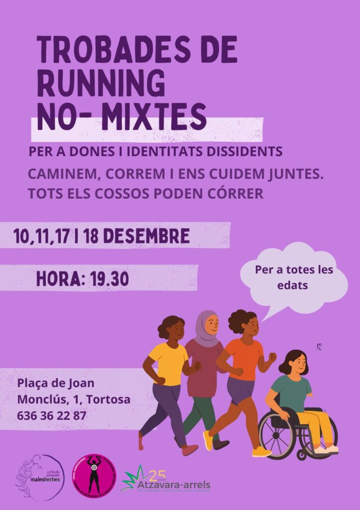 Esta setmana, Atzavara-arrels, amb el suport de l’entitat feminista Males Herbes, impulsa trobades de running no-mixtes per a dones i identitats dissidents. És un projecte que tot just comença a caminar ara de manera pública, però que va nàixer fa uns mesos de la mà de Laia Mestre, educadora social i tècnica d’Atzavara-arrels. “Paral·lelament a la meua carrera, a mi m’agrada molt l’esport. No m’hi dedico però en practico moltíssim. L’any passat, vaig voler que tot l’equip d’Atzavara participés en una carrera antiracista a Barcelona, que ens hi presentessem totes fent 5 quilòmetres. Les meues companyes no havien practicat mai esport i ho vèiem com una cosa molt llunyana, i més tractant-se de running, que es veu com una activitat molt exigent i fatigada”, explica Mestre. “Vam començar a preparar-nos mig de broma i s’hi va anar afegint gent. I ens vam plantejar de convertir-ho en una activitat oberta per a dones”.