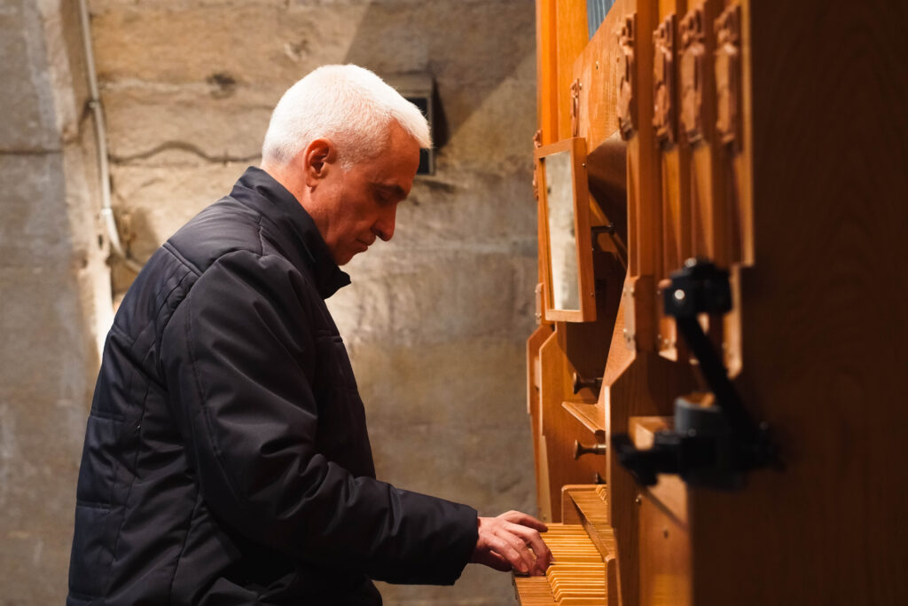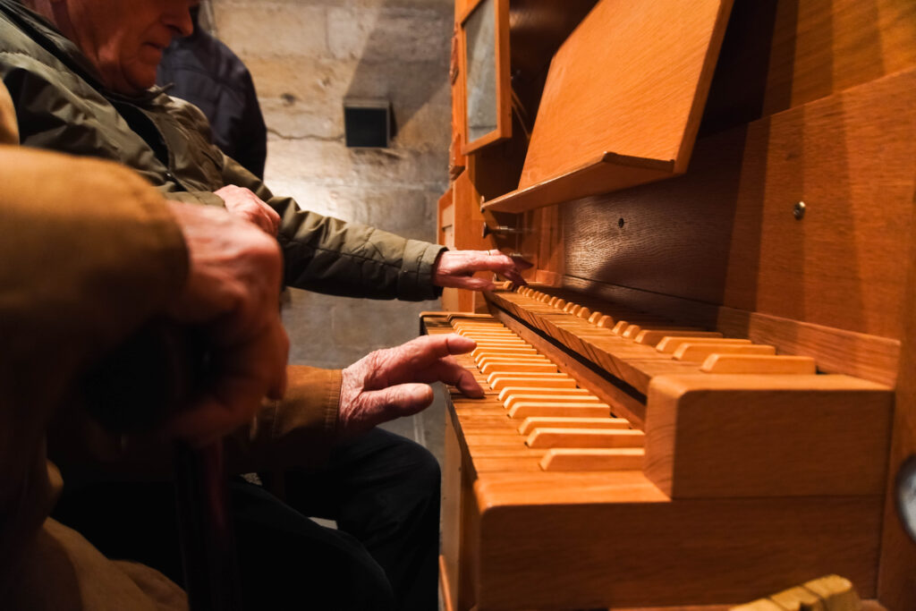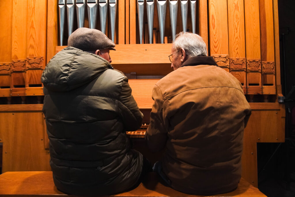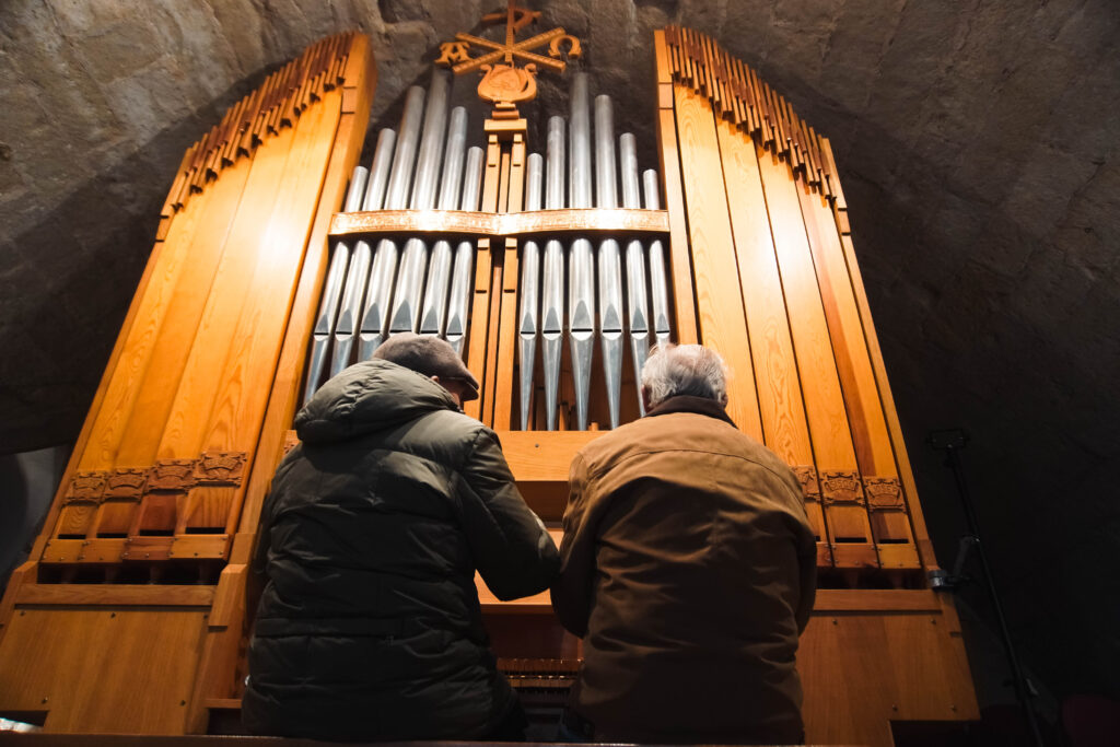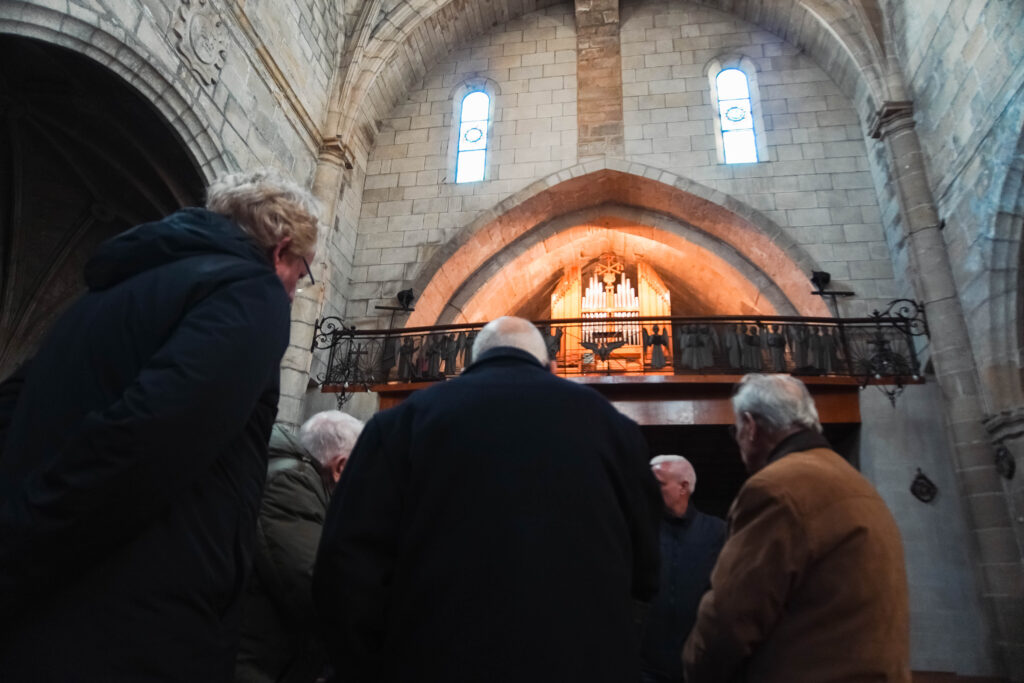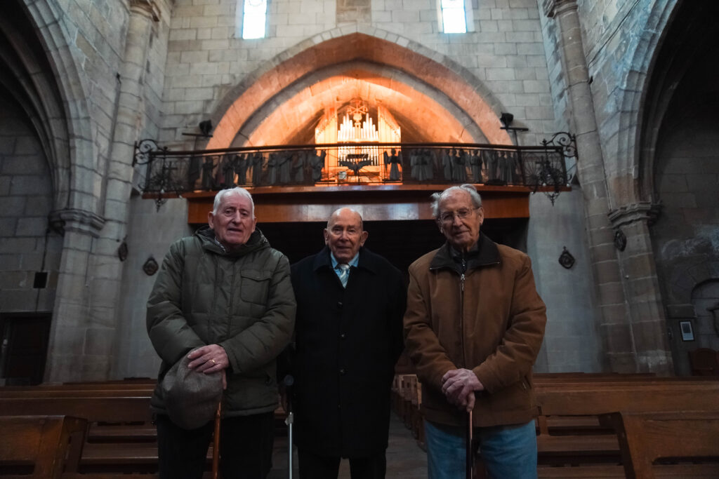 A l’església de Santa Maria de Flix hi havia un orgue que va quedar destruït per la guerra civil. Durant els anys posteriors i fins la dècada dels 90, l’Orfeó de Flix havia d’assajar i actuar acompanyat d’altres instruments, cap de tant majestuós com l’orgue que, durant dècades, havia coronat el temple. Però un grup de jubilats flixancos de l’antiga fàbrica Erkimia van entestar-se en reomplir aquell forat: Josep Català Llurba, Domingo Ferrús Sangrà, Francesc Fortuny Llecha, Josep Masip Llecha, Jaume Masip Vidal, Santiago Mulet Pujol, Marc Mur Navarro, Salvador Pérez Martínez, Ramon Rosich Cortina i Eugeni Sabaté Nogales, tots ells amb lligams a l’Orfeó i a l’església, van veure’s amb cor de construir, amb les pròpies mans i de manera desinteressada, un nou orgue per al poble. Al novembre del 2025, en el moment de realització d’esta peça, es reunixen per admirar la seua obra Jaume Masip, Francesc Fortuny i Salvador Pérez, que prenen el sol abans d’entrar junts a l’església per admirar, una vegada més, un orgue que celebra els 25 anys de vida.